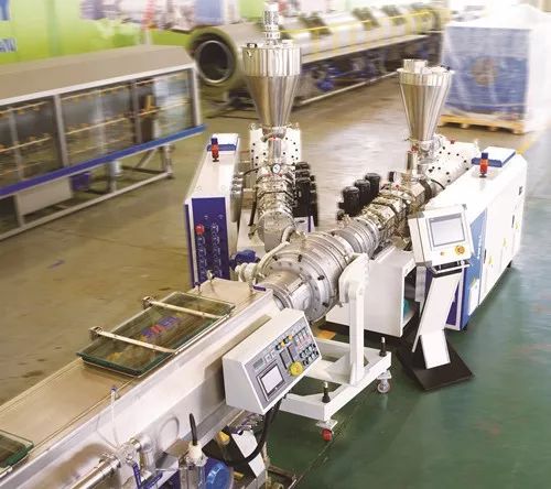 The line used two sets efficient SJZ conical extruders to make three layer PVC pipe. The middle layer used PVC+ high-calcium or PVC foaming material.